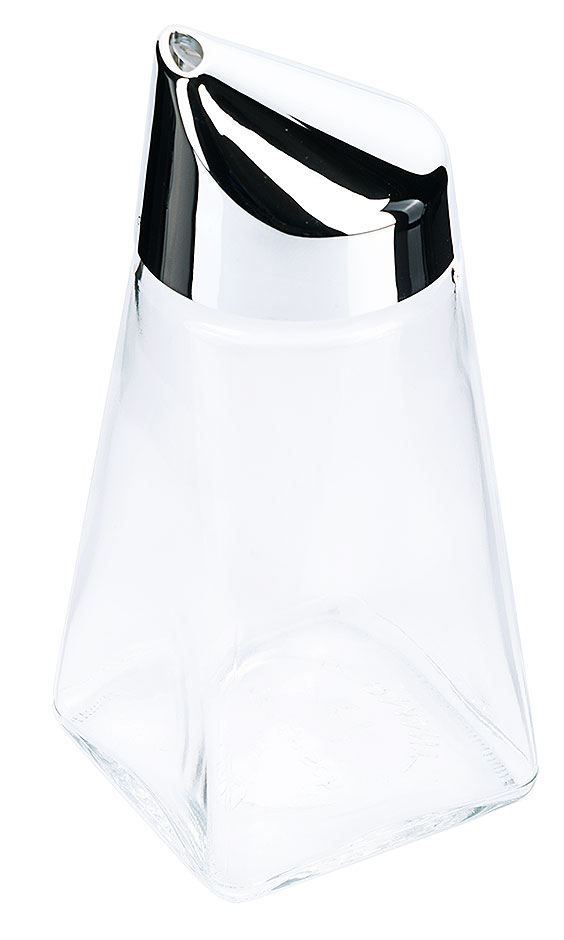 aus glattem Pressglas, verchromte Kunststoffkappe, nur das Glas ist spülmaschinengeeignet