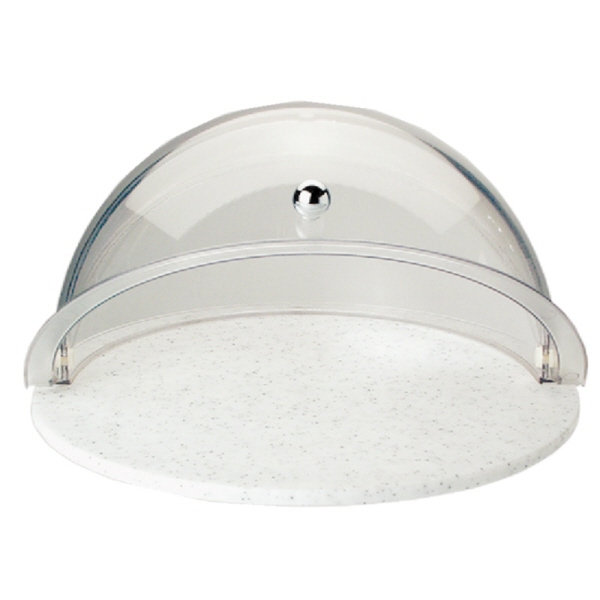 Größe: 38(Ø)cm. Farbe: Marmoriertes Schneidebrett mit durchsichtiger Rolltop-Haube.